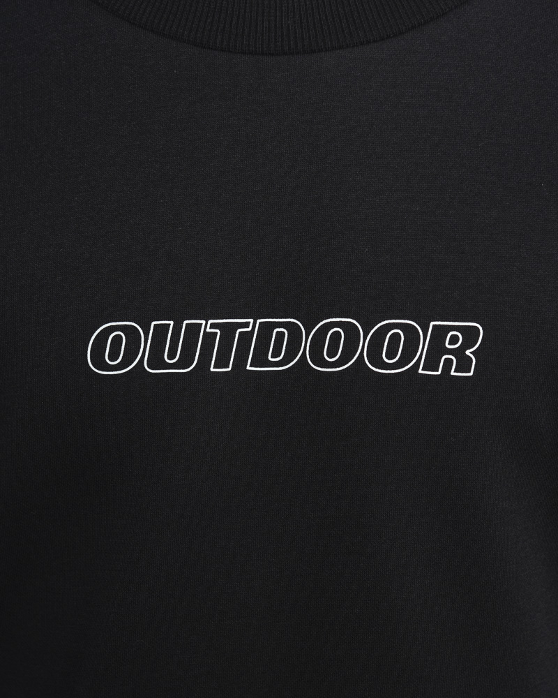Yishion Men Solid Coloured Long Sleeve Sweatshirt with Outdoor Slogan (Black)