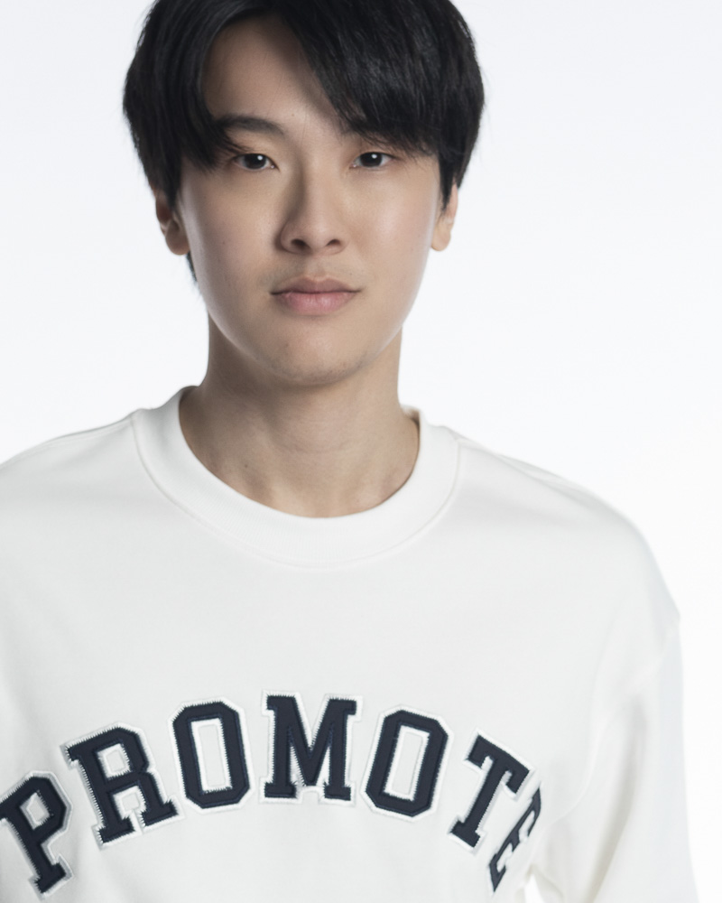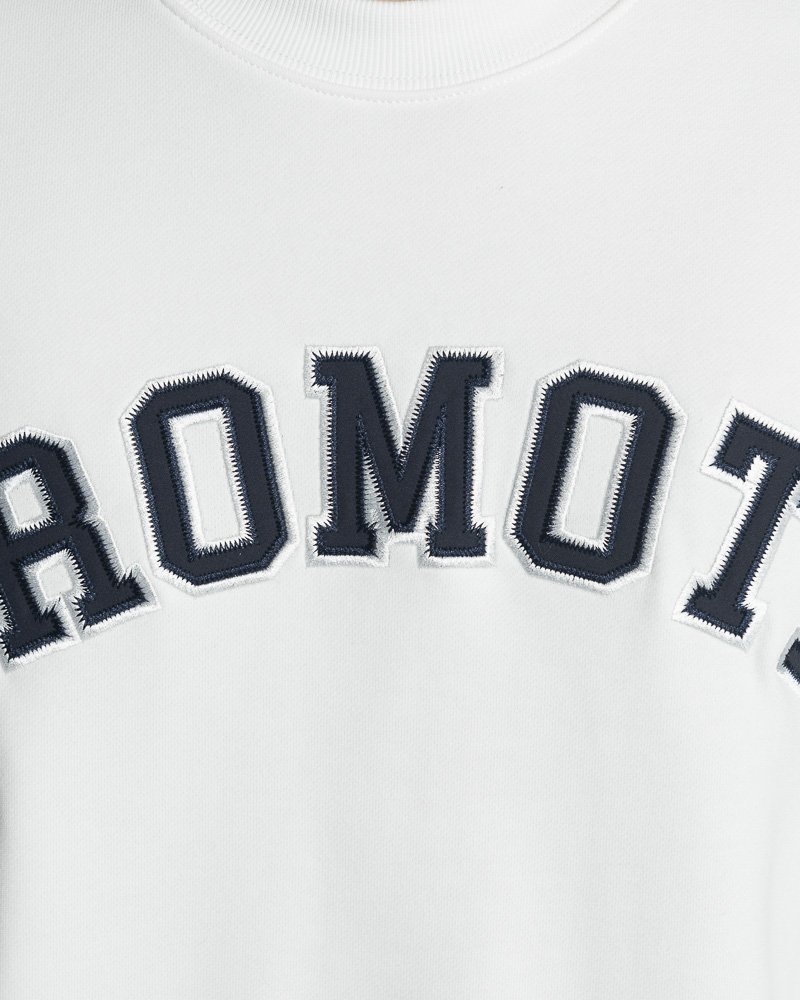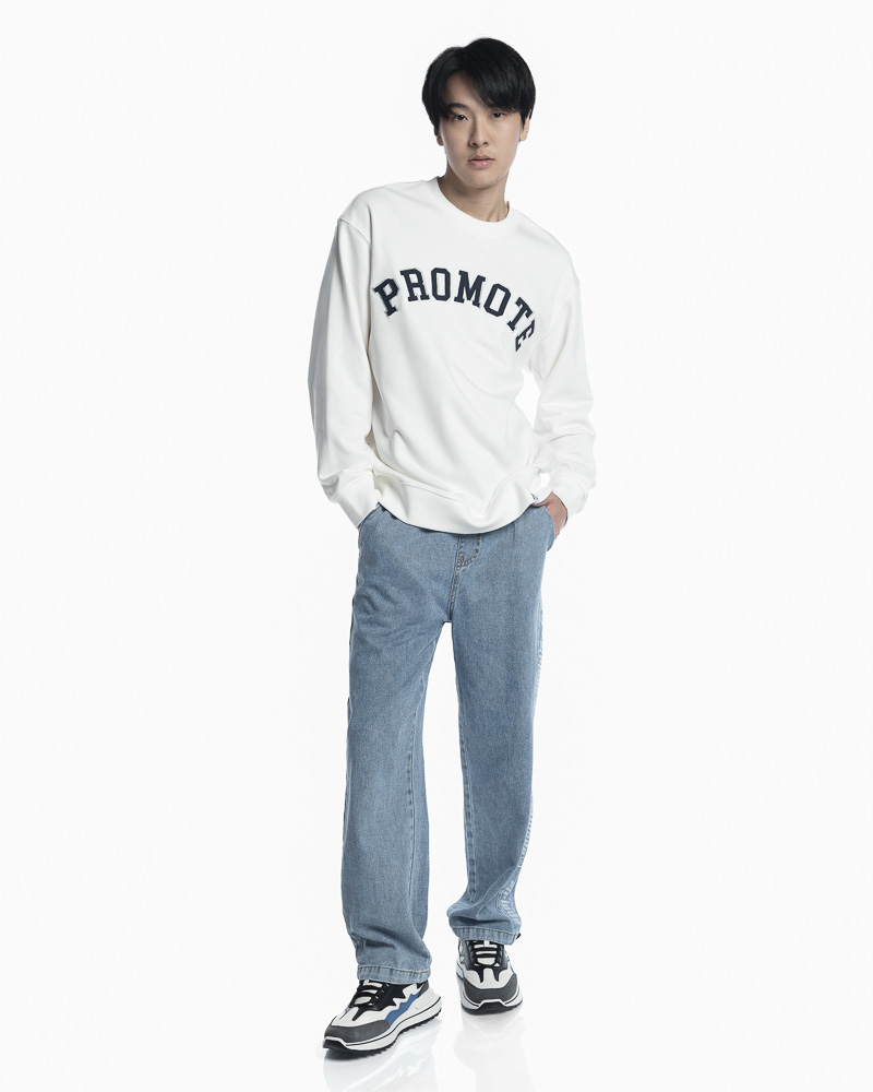 Yishion Men Solid Colour Long Sleeve Sweatshirt with Promote Slogan Embroidery (White)