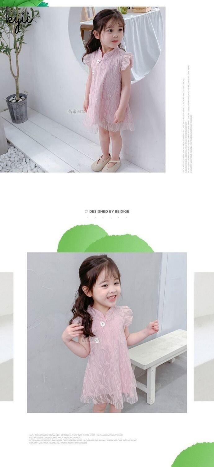 KYII Kids Girls Summer Round-neck Dress Sleeveless Casual Loose Dress kyii0215