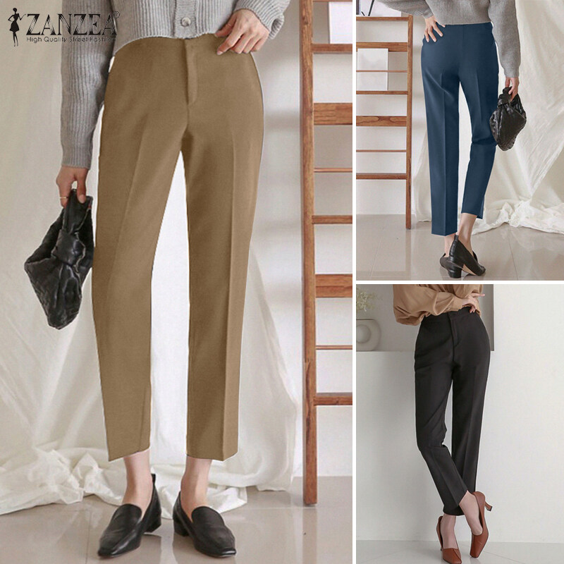 ZANZEA Women Formal Office Stretchable Ninth Pants Elegant Commute Skinny Trousers #11