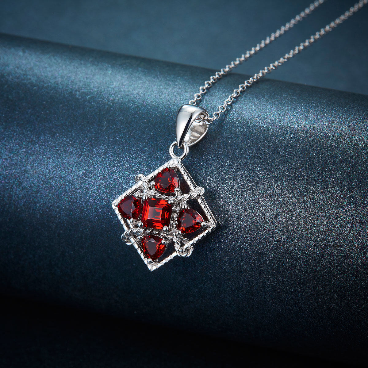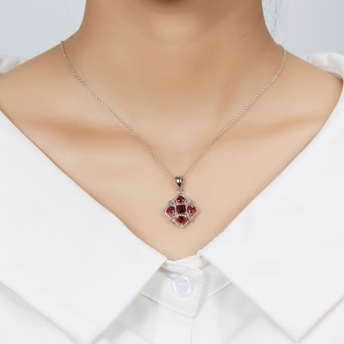Pendant Necklace for Women's Gift Natural Gemstone Garnet Pure 925 Silver Fashion