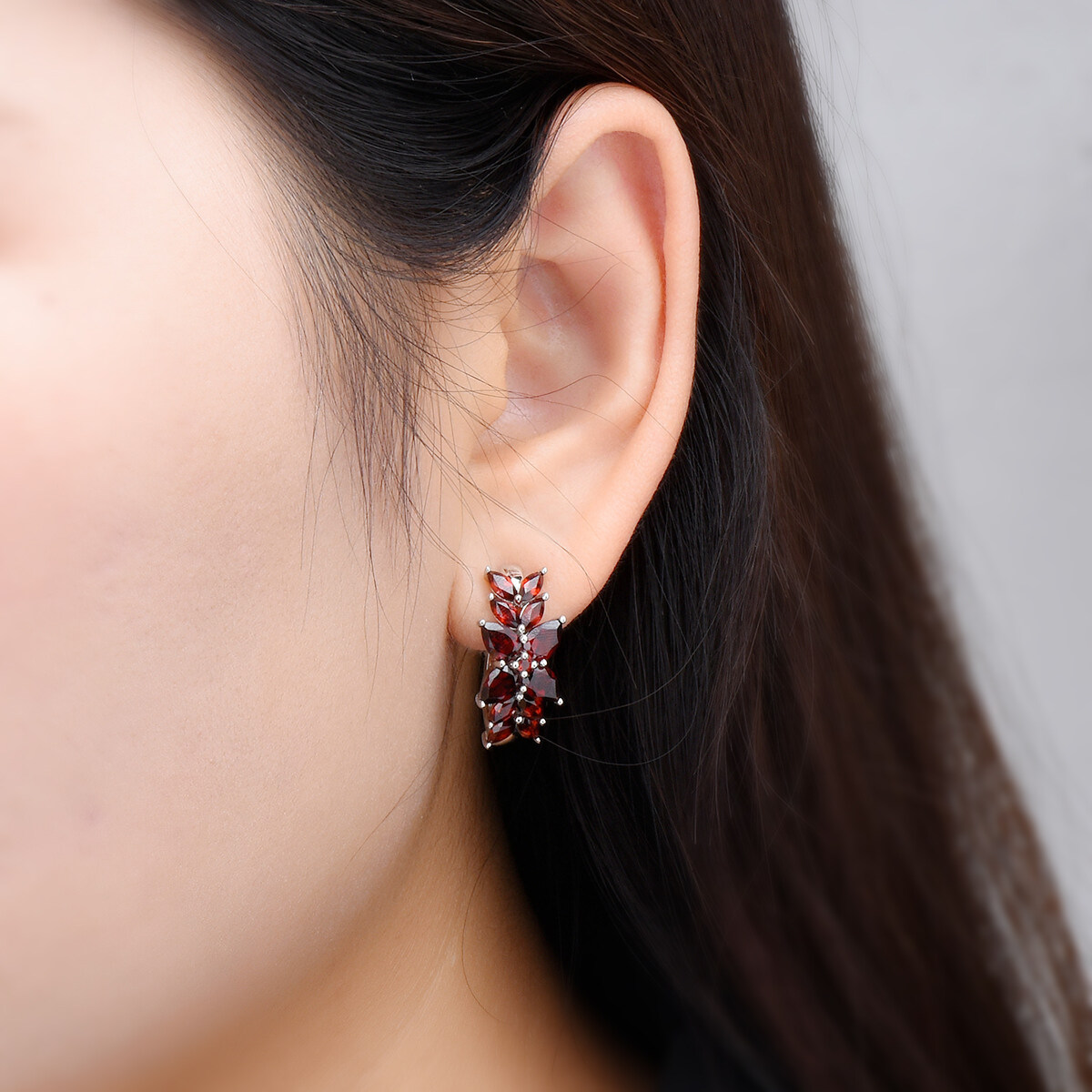 Jewelry Sets Genuine Red Garnet Cluster Earrings Ring Silver 925 Original Design Red Gemstone Fine Elegant Crystal Jewelry for Women Engagement Anniversary Gift