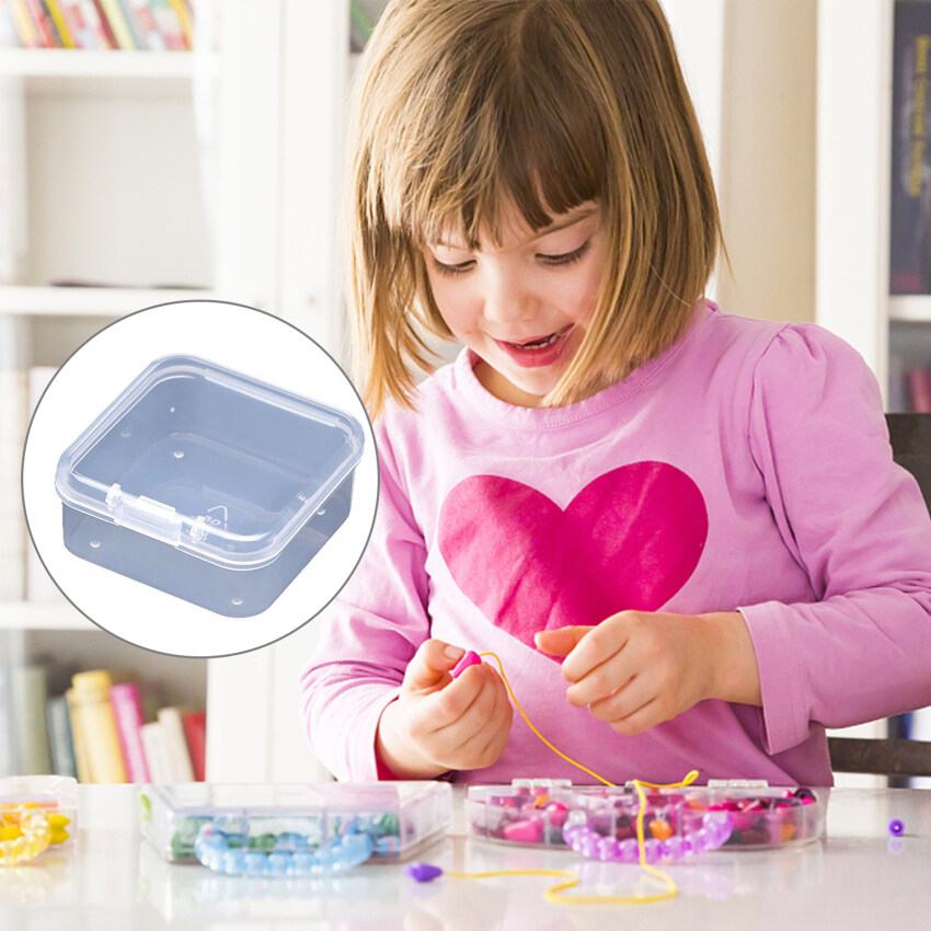 4.3*4.3*2CM Mini Transparent Storage Box Square Integrated Clamshell Storage Box Plastic Box Jewelry Storage Box Container Packaging Box Earrings Ring Beads to Collect Small Items