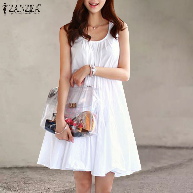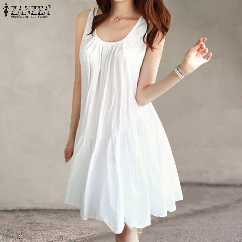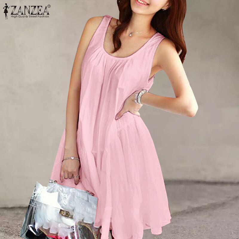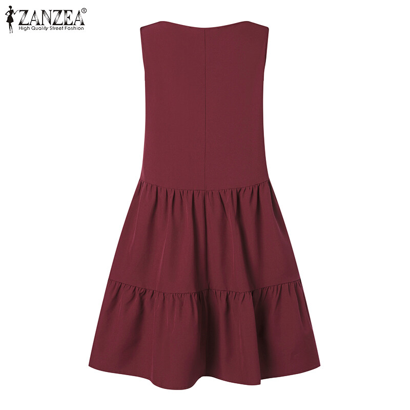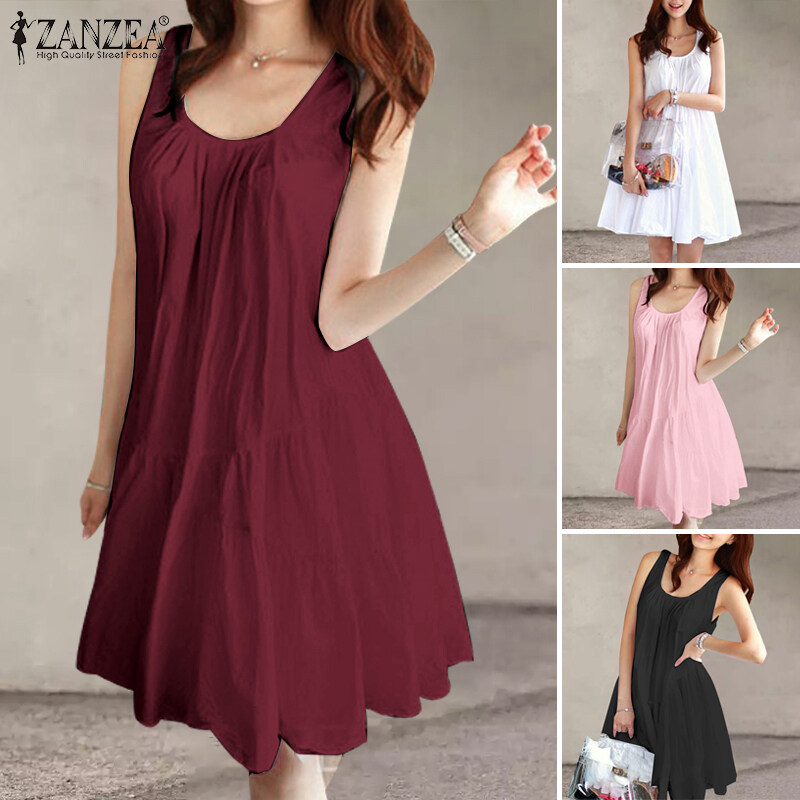 ZANZEA Korean Style Women Sleeveless Tiered Midi Dress Beach Round Neck A-Line Sundress #10