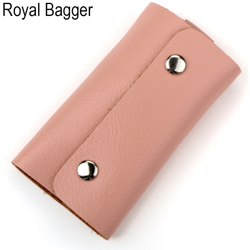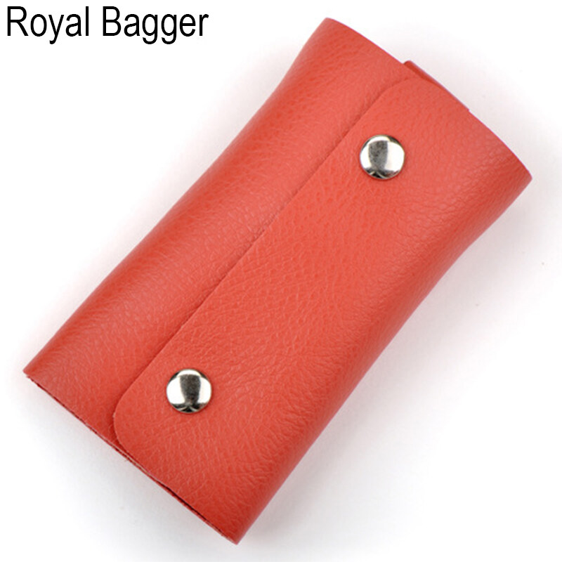 ROYAL BAGGER Genuine Cow Leather New Couples Ladies Key Bag For Women Girls Boys Men Card Purse Korean Style Keys Bags Fashion Wallet Sets Holders