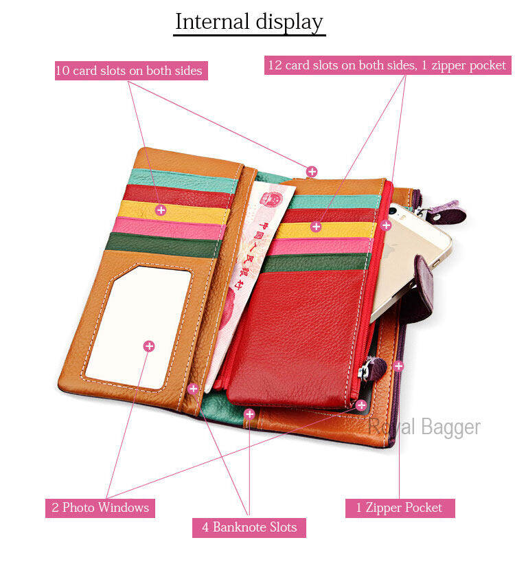 ROYAL BAGGER Purse for Women Genuine Cow Leather Long Wallet Ladies Multifunction Card Holders Wallets Fashion Casual Work Party Clutch Bag