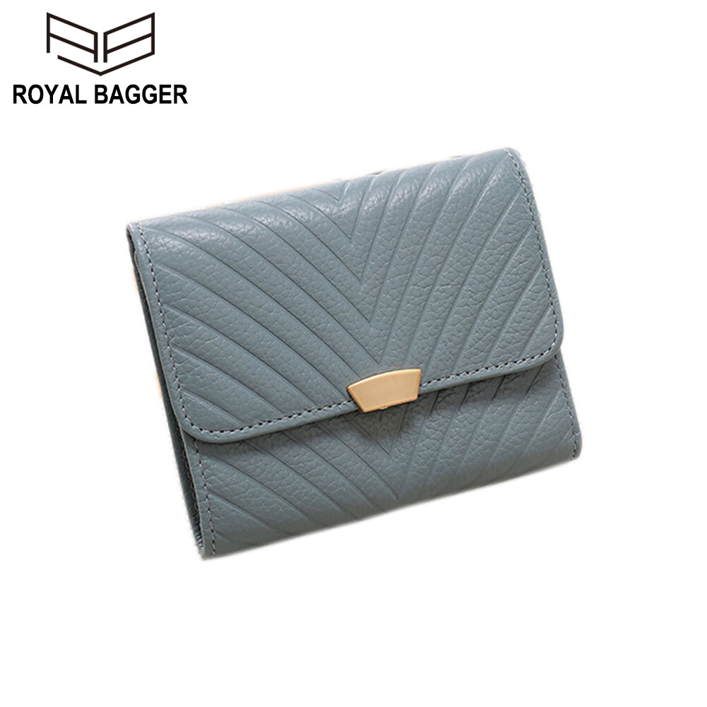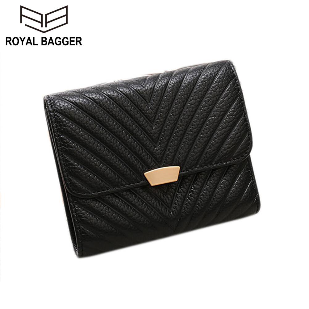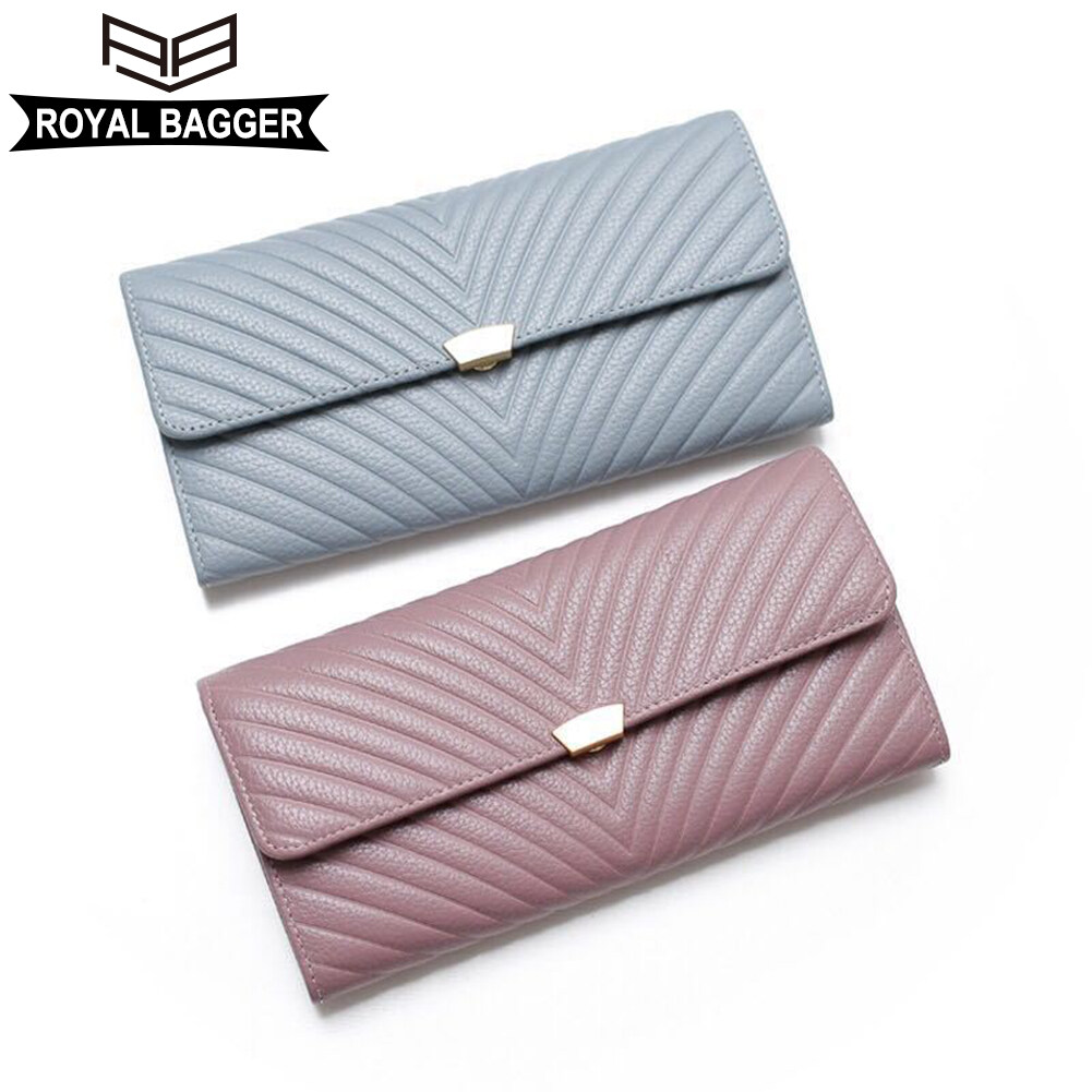 Royal Bagger 100% Genuine Cow Leather Purse Fashion Ladies Wallet Large Capacity Zipper Two Fold Long Clutch Bag Elegant Wallets For Women Girls