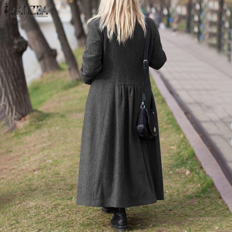 [Clearance Sale] ZANZEA Womens Winter Think Coats Full Sleeve Tunic Casual Loose Trench Long Maxi Coat CLE #15