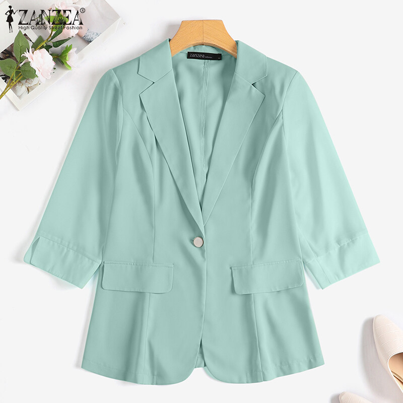 ZANZEA Korean Style Women's Blazer Button Up Solid Office OL Work Turn-Down-Collar Suits #11